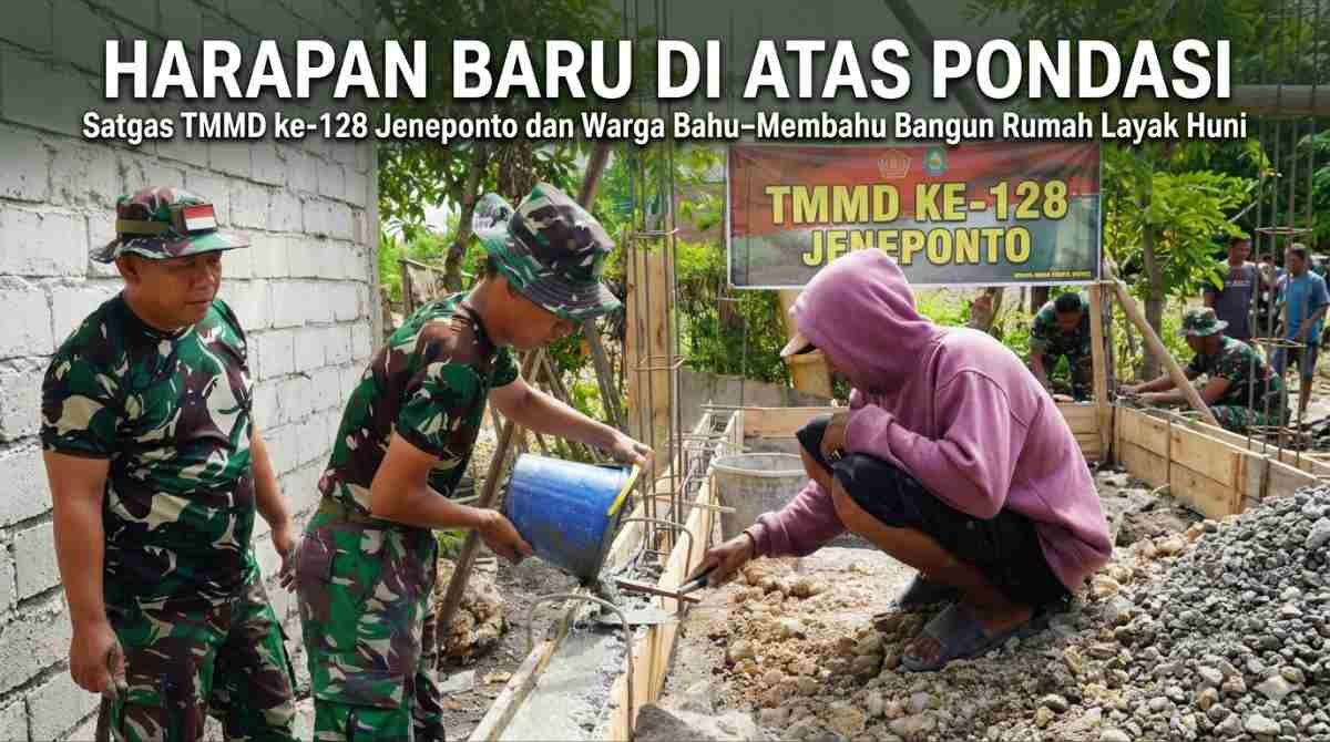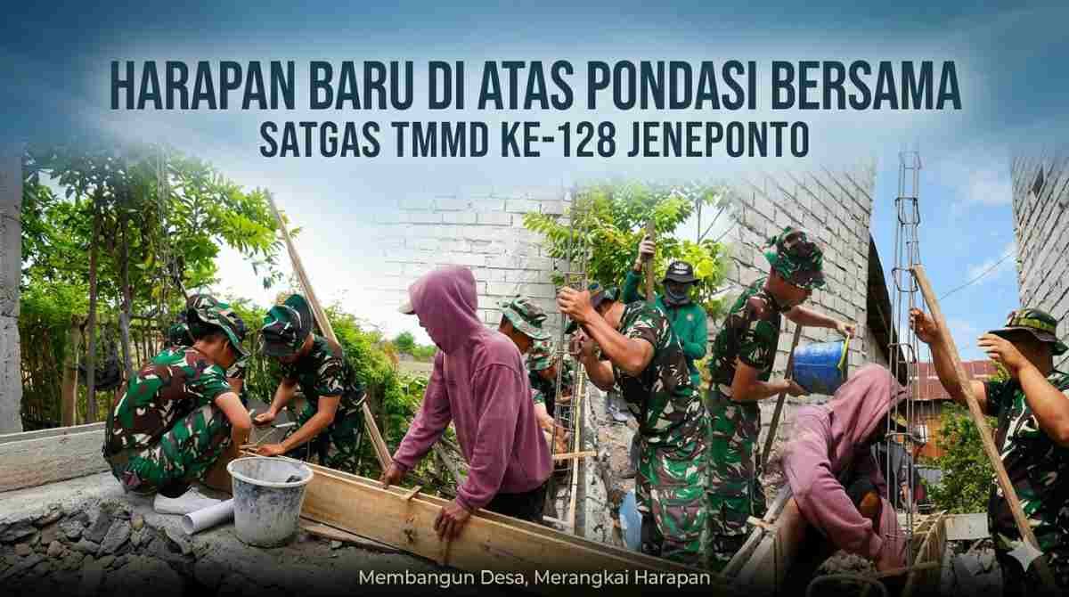 Hanya berselang dua hari sejak pembukaan resmi oleh Bupati Jeneponto, Satgas TNI Manunggal Membangun Desa (TMMD) ke-128 Kodim 1425/Jeneponto langsung turun tangan, menyatu dengan warga dalam aksi nyata pembangunan Rumah Tidak Layak Huni (RTLH).