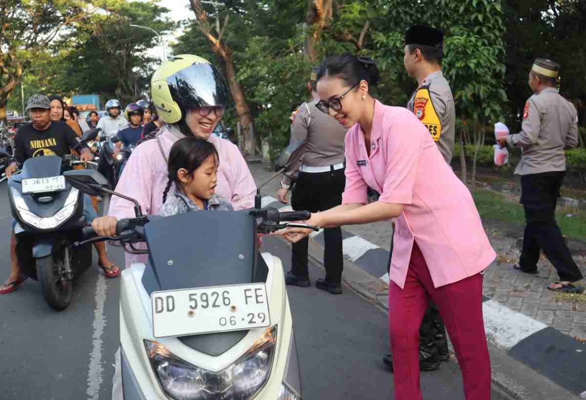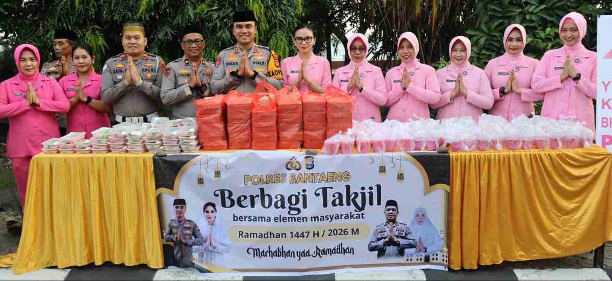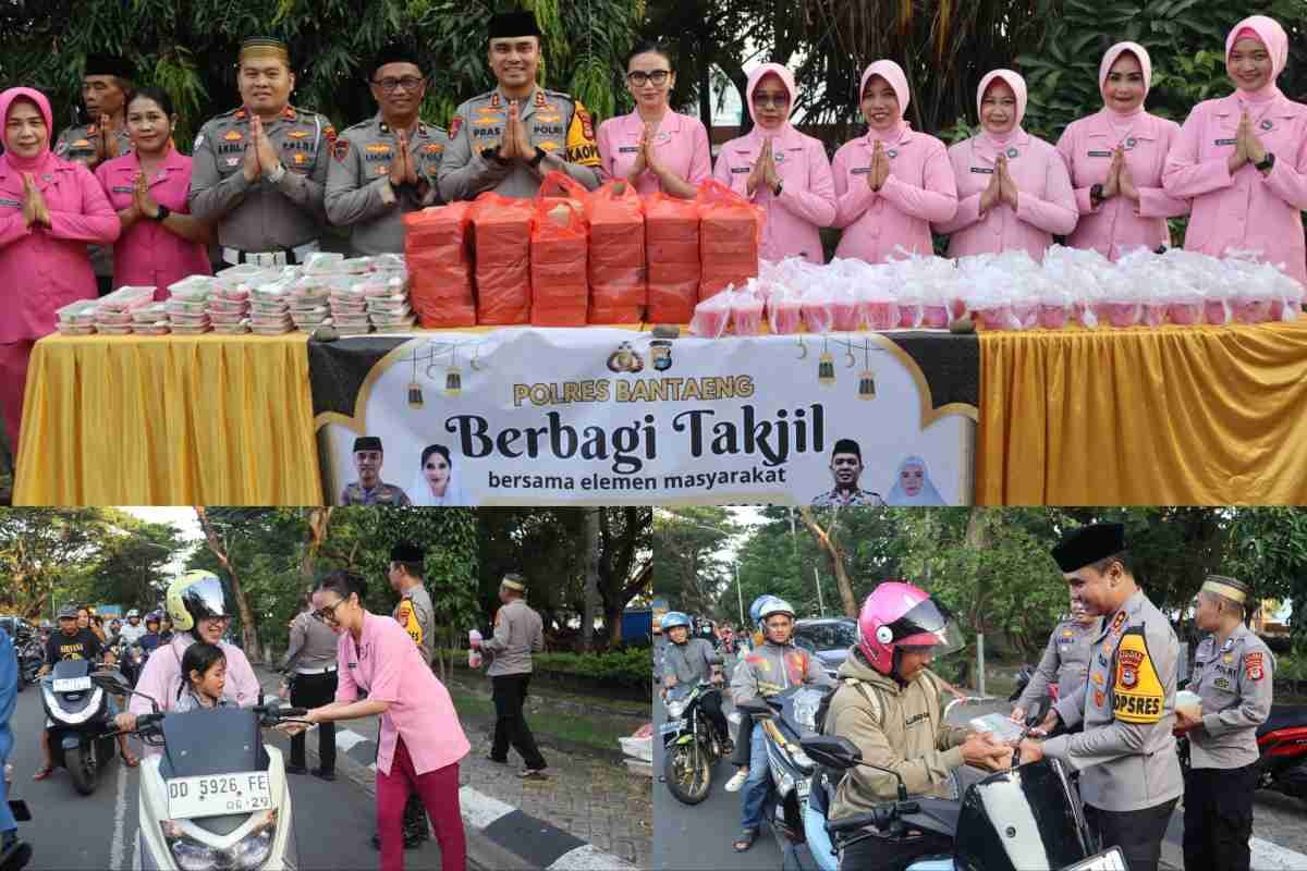 Aksi bagi-bagi takjil yang dilaksanakan di poros jalan Lamalaka, Kecamatan Bantaeng, Kabuoaten Bantaeng pada Jum’at sore (13/03/2026) menjelang waktu berbuka puasa itu, dipimpin langsung Kapolres Bantaeng AKBP Nur Prasetyantoro Wira Utomo, S.I.K., M.H didampingi Ketua Bhayangkari Cabang Bantaeng Ny. Nanda Prasetyantoro.