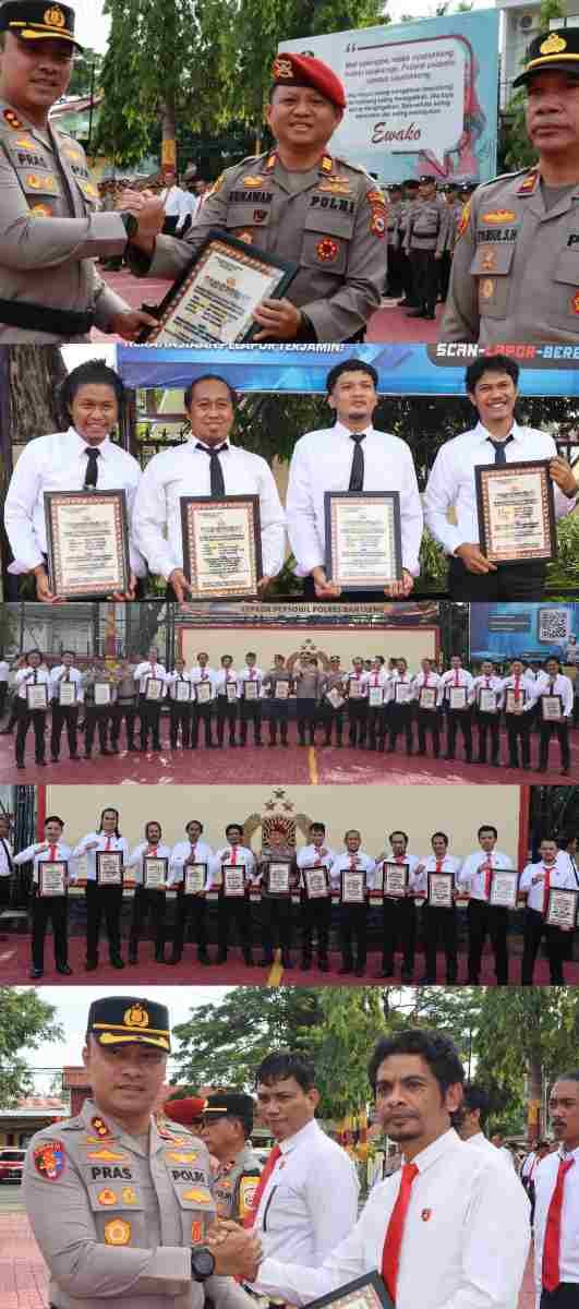 Penghargaan diserahkan langsung Kapolres Bantaeng, AKBP Nur Prasetyantoro Wira Utomo, S.I.K., M.H melalui upacara yang digelar di Lapangan Upacara Apel Presisi Polres Bantaeng. Senin (02/03/2026).