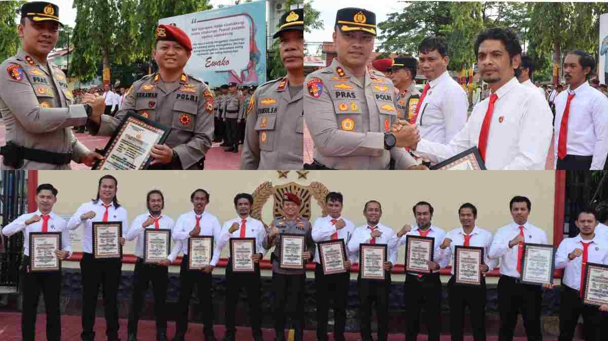 Kasat Reskrim, AKP Gunawang Amin, S.H., M.Si beserta 9 orang personel Sat Reskrim dan 3 personel Sat Intelkam menerima penghargaan atas keberhasilannya dalam pengungkapan dan penanganan kasus curanmor lintas daerah.