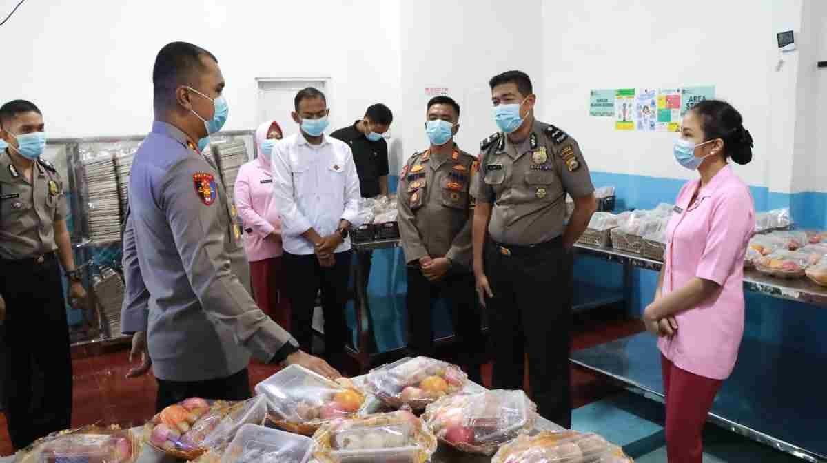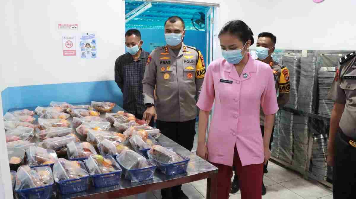 Terpantau, Kapolres bersama rombongan mengecek secara menyeluruh, mulai dari menu dapur, mekanisme proses pengolahan makanan, proses pengepakan, kebersihan dapur, ruang penyimpanan bahan baku dan freezer, hingga pengecekan masa kedaluwarsa makanan yang akan disajikan.