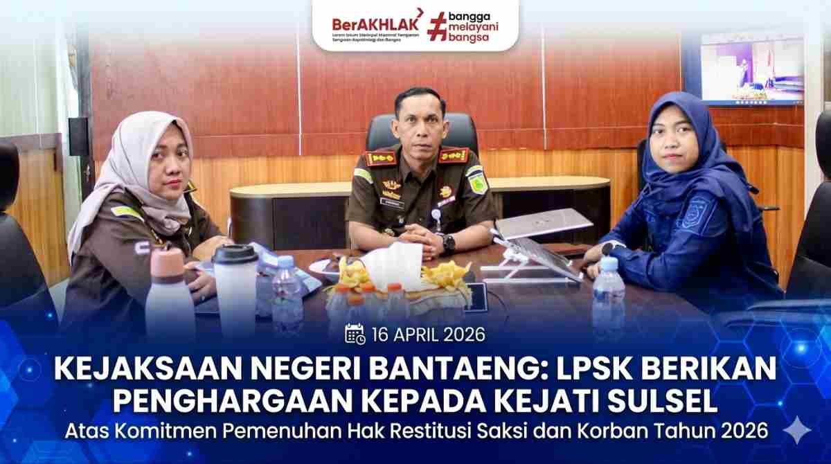 Kejaksaan Negeri Bantaeng: ‘LPSK Berikan Penghargaan kepada Kejati Sulsel atas Komitmen Pemenuhan Restitusi Korban’