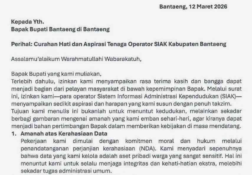 Perihal: Curahan Hati dan Aspirasi Tenaga Operator SIAK Kabupaten Bantaeng
