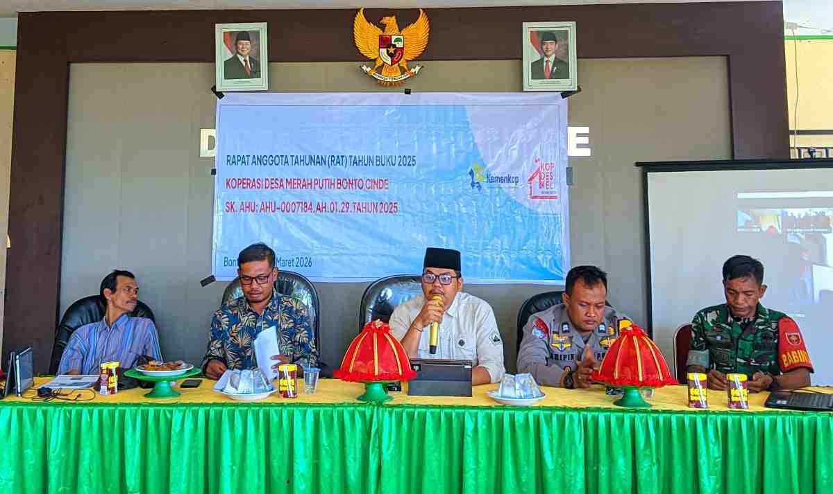 Pemerintah Desa (Pemdes) Bonto Cinde di Kecamatan Bissappu Kabupaten Bantaeng bersama Pengurus Koperasi Desa Merah Putih Desa Bonto Cinde, menyelenggarakan acara Rapat Akhir Tahunan (RAT) Tahun Buku 2025 sebagai bentuk pertanggungjawaban pengurus.