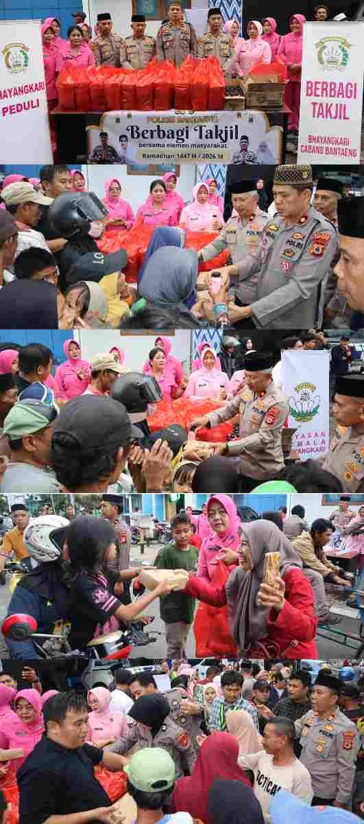 Sebagai bentuk kepedulian Polri kepada masyarakat dan wujud sedekah di bulan suci Ramadan 1447 H, Polres Bantaeng mengandeng elemen mahasiswa dan komunitas masyarakat untuk berbaur dalam kegiatan berbagi takjil kepada warga yang melintas di jalan Lanto dg Pasewang (didepan Pos Lantas Terpadu). Jumat (6 Maret 2026).